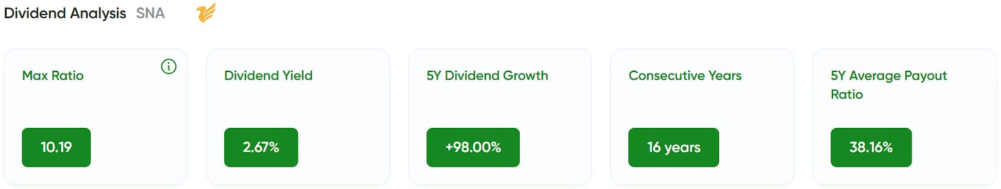 Snap-on is a premium tools and equipment manufacturer serving professionals in automotive and industrial sectors. Strong pricing power, loyal customer base, and consistent dividend growth make it a solid reinvestment target.