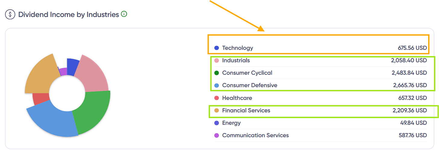 No purchases or transactions this week — everything stays the same. Just collecting dividends for now and waiting for May and June, my two biggest payout months so far this year.