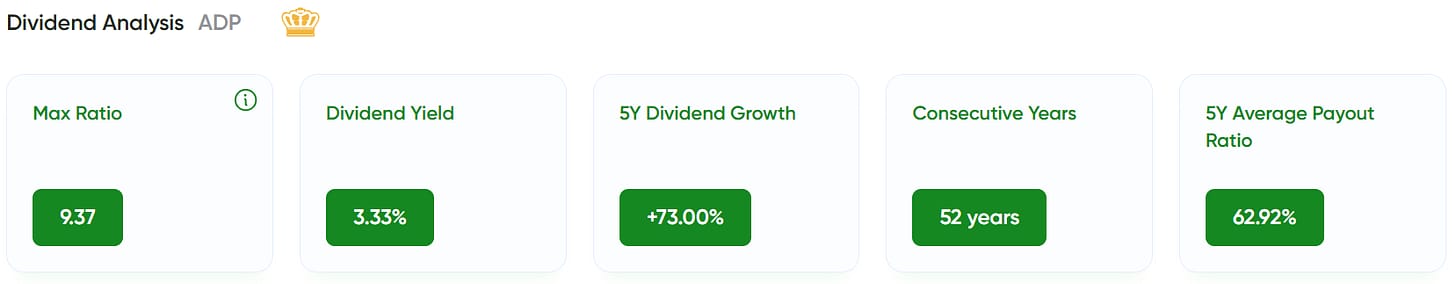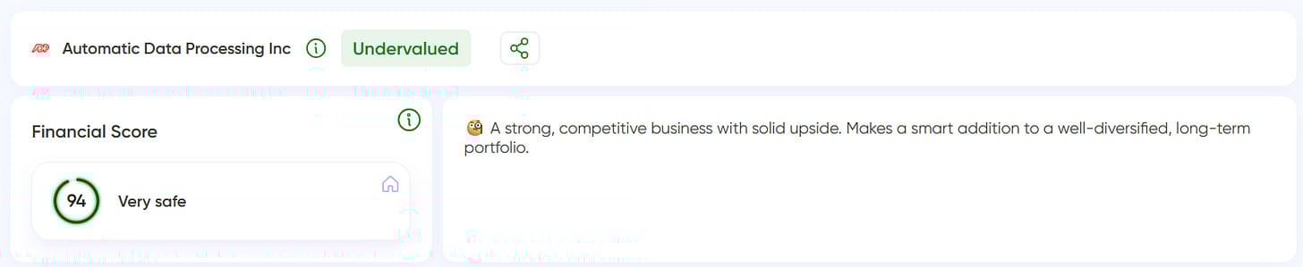 ADP is a global leader in payroll, HR, and outsourcing solutions. The company generates highly predictable recurring revenue, supported by long-term client relationships and strong retention rates — exactly the kind of steady income engine I like to own.